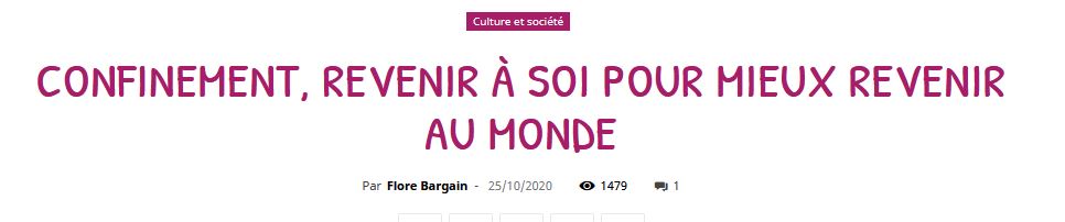 - Confinement, revenir à soi pour mieux revenir au monde, Grandir Autrement, octobre 2020